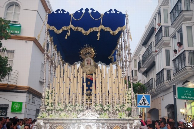 Eduardo Fdez. López. El pasado 14 de agosto se celebró en la localidad gaditana de Chiclana de la Frontera una procesión magna mariana con todas las imágenes marianas de las hermandades chiclaneras, las nueve dolorosas de las hermandades de penitencia, el Simpecado de la Hermandad del Rocío y las vírgenes del Carmen, de la Iglesia de San Sebastián y la de Sancti Petri.