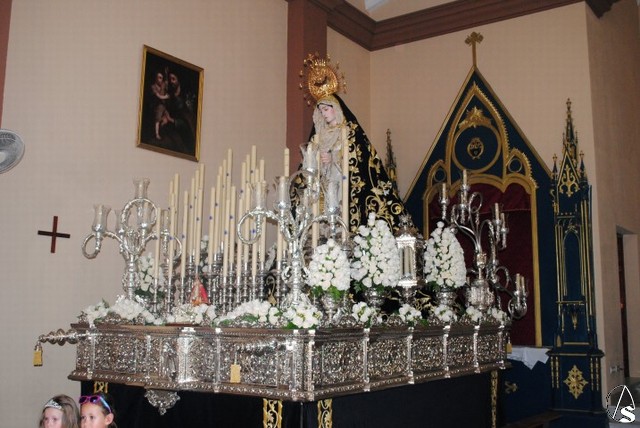 Hermandad de Ntro. P. Jesús Nazareno, NTRA. SRA. DE LOS DOLORES y San Juan Evangelista (Iglesia de Jesús Nazareno). Hermandad fundada a mediados del S. XVII, poco antes de la llegada a Chiclana de las Madres Agustinas Recoletas en 1666, efemérides de la que se cumple este año el 350 aniversario. La Imagen de Ntra. Sra. de los Dolores sustituyó a la anterior Titular Mariana y es obra de D. Francisco Buiza Fernández. Fue bendecida en 1972. Procesiona cada Jueves Santo.