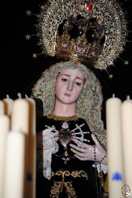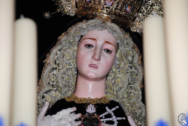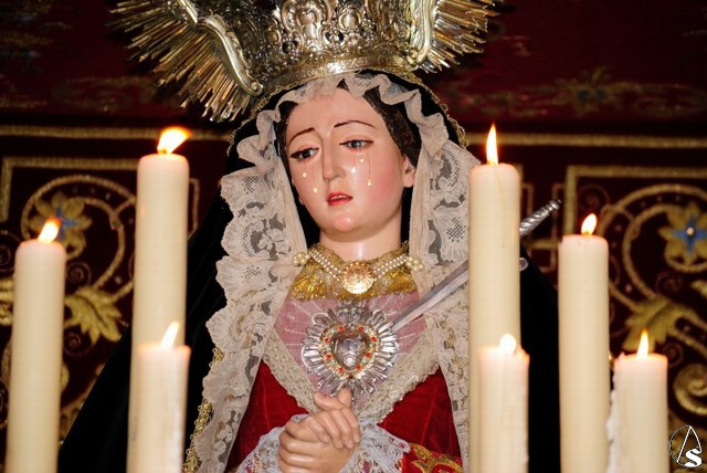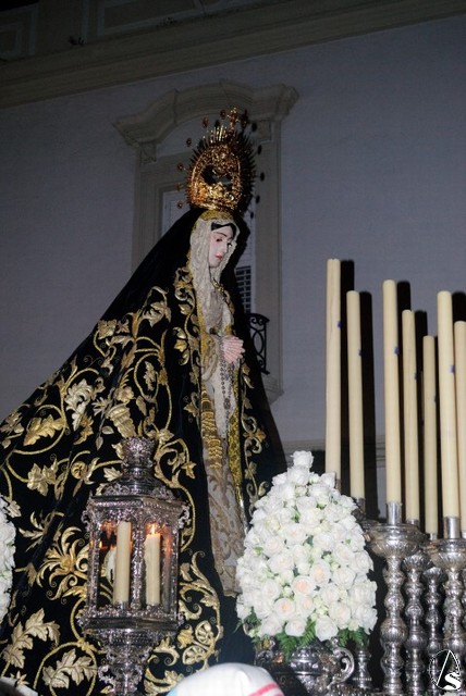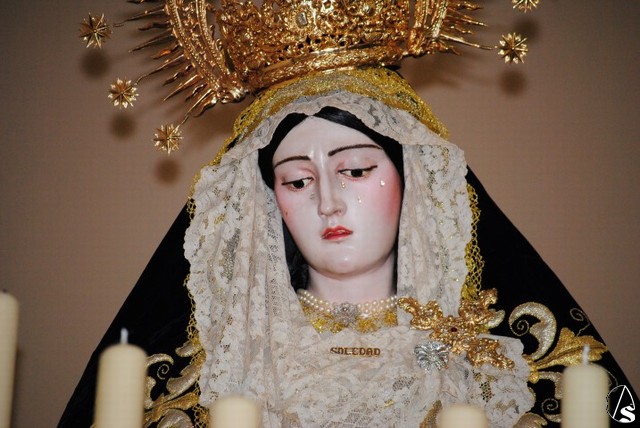 Hermandad del Stmo. Cristo de la Vera Cruz, MARÍA STMA. DEL MAYOR DOLOR y San Juan Evangelista (Capilla del Santo Cristo). Esta hermandad, es la más antigua de Chiclana. Ubicada en la ermita del mismo nombre, en el siglo XVI a extramuros de la villa. María Stma. del Mayor Dolor es una obra anónima fechada hacia 1750. Ha sido restaurada por Alfonso Berraquero. Procesiona el Viernes Santo, formando parte del misterio del Calvario en un solo paso.