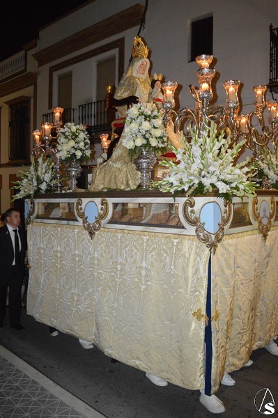 Este año la corporación mairenera estrenó nuevo paso para la titular mariana. Durante el año la Agrupación Parroquial ha trabajado para poder ver a su Virgen de los Reyes sobre nueva peana, así como para el estreno de los faldones y los respiraderos nuevos. El paso se completa con candelabros de guardabrisas en las esquinas y jarrones laterales con rosas blancas, en las esquinas se exornó con nardos y gladiolos blancos.