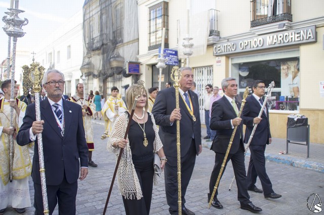 La jornada del 18 septiembre no solo fue la celebración de la Procesión Magna Mariana, se celebrado a las once de la mañana la Santa Misa Pontifical en la Parroquia de San Juan Bautista oficiada por el Arzobispo de Sevilla Monseñor Juan José Asenjo.