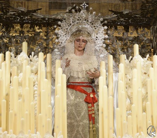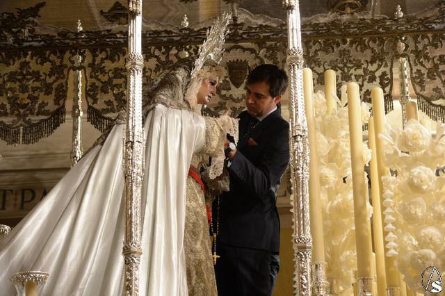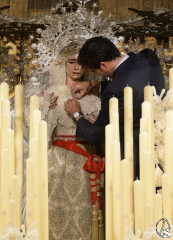 La medalla que ya se encuentra junto a la titular de la corporación del Domingo de Ramos es la réplica de la medalla de la ciudad concedida al Consejo de Cofradías de Sevilla.