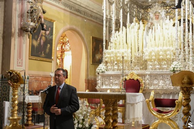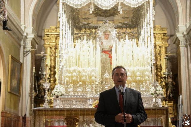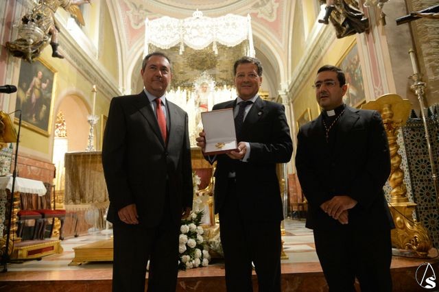 Arte Sacro. El alcalde de Sevilla, Juan Espadas Cejas, entregó ayer, miércoles 21 de septiembre, a la Virgen de la Paz la medalla de oro de la Ciudad de Sevilla con motivo de Su Coronación Canónica. El acto tuvo lugar en la Parroquia de San Sebastián, sede canónoca de la hermandad de la Paz, y a la misma acudieron, además del alcalde, capitulares del Pleno Municipal representantes de los diferentes grupos.