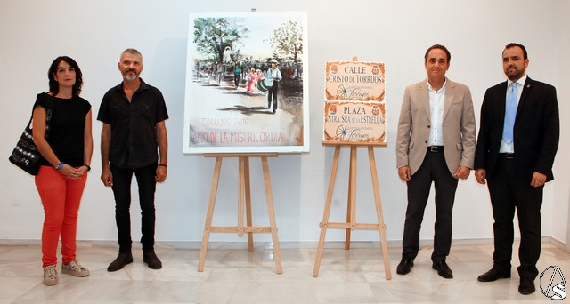 Fran Granado. El alcalde de Valencina de la Concepción, Antonio Manuel Suárez, acompañado de la concejala delegada de Fiestas y Festejos, Luisa Beltrán, y el Hermano Mayor de la Hermandad de Torrijos, Juan María Fernández, presentaron anoche en la sala de exposiciones del Ayuntamiento el Cartel Anunciador de la Romería de Torrijos 2016 así como las nuevas placas del recorrido, novedad de este año. El pintor Benjamín Castillo Barragán, presente en el acto, es el autor del cartel por segundo año consecutivo y ha optado por una acuarela inspirada en el l protagonismo del camino y de los peregrinos. La Romería se celebra el domingo 9 de octubre.
