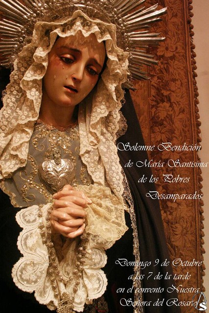 Fran Granado. Hoy domingo 9 de octubre a las 19:00 horas se bendecirá públicamente la imagen dolora de María Santísima de los Pobres Desamparados, en el convento Nuestra Señora del Rosario de Arahal, con dicho motivo el próximo día 14 de octubre se realizará un devoto besamanos desde las 18:30 horas hasta las 21:30 de la noche.