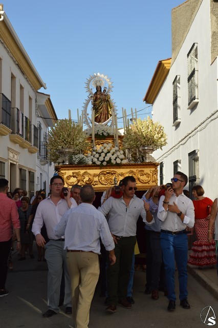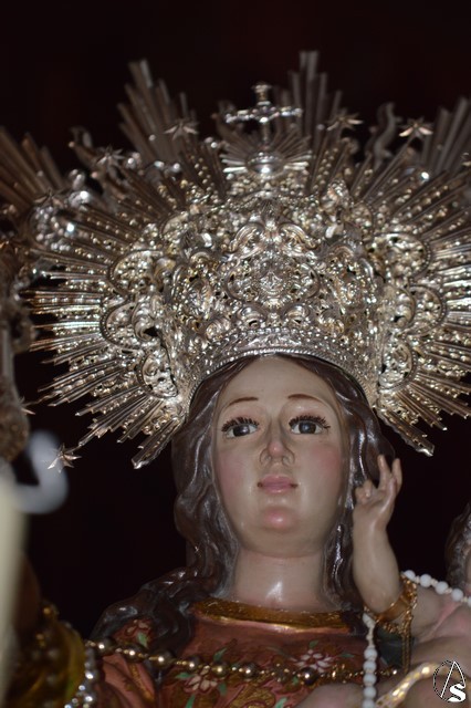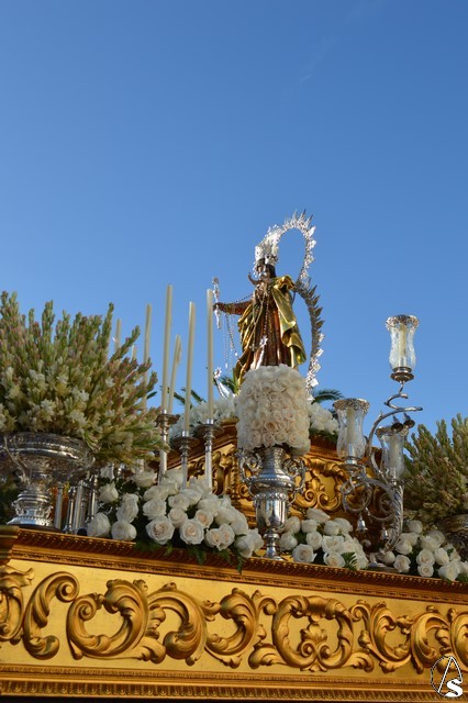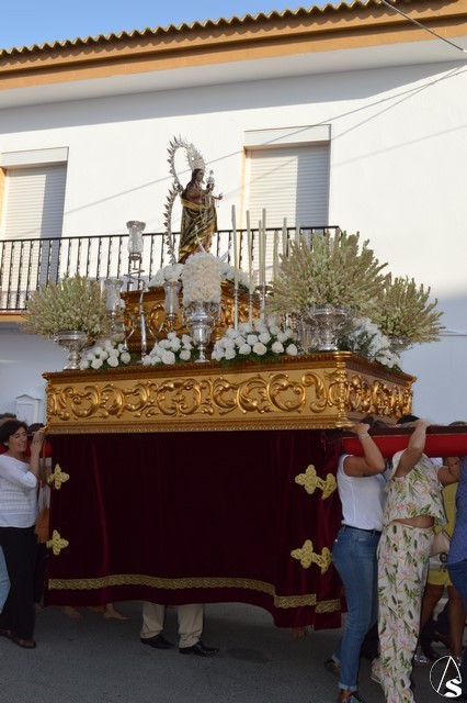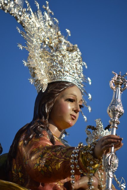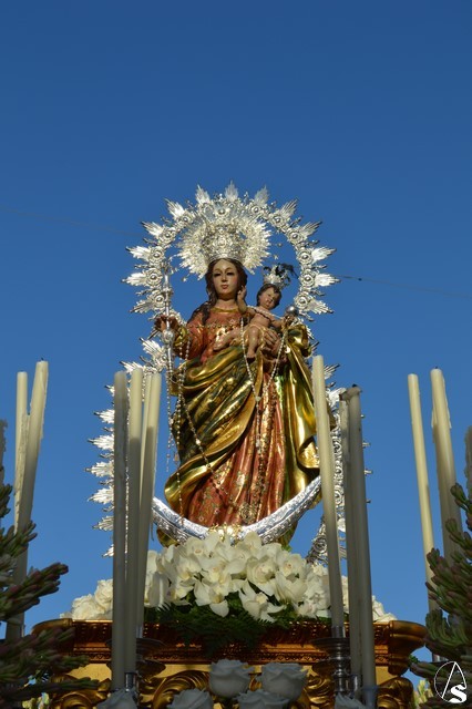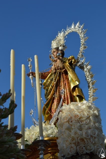 Nuestra Señora del Rosario, una bella talla completa, es portada sobre paso con canastilla dorada y alumbrada por varias piezas de candelería en la delantera. El paso estuvo exornado con nardos y rosas blancas. Sobre peana dorada va la imagen de la Virgen que porta en su mano derecha cetro en plata y numerosos rosarios. La imagen queda enmarcada por una pequeña ráfaga de plata luciendo en sus sienes corona del mismo metal.