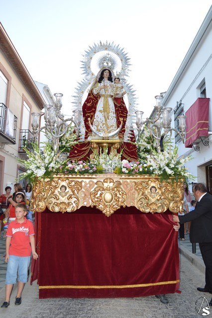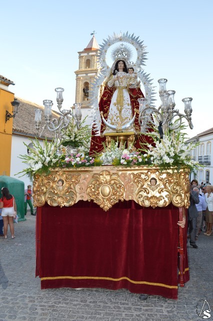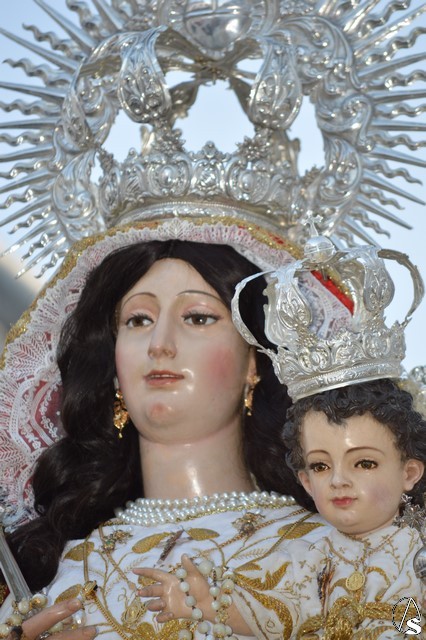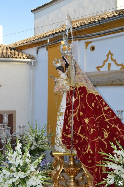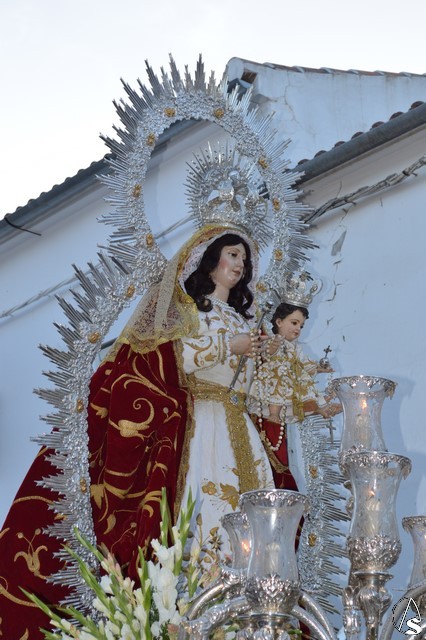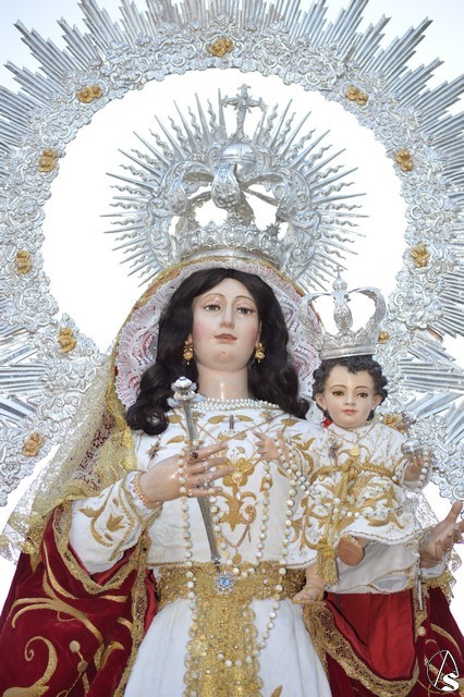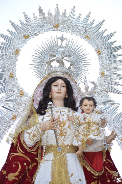 Nuestra Señora del Rosario es obra, según distintos expertos, de Juan de Astorga, aunque el Santísimo Niño fue tallado por Álvarez Duarte. Durante la contienda civil la Iglesia fue asaltada y la Virgen derribada de su altar desapareciendo la imagen del niño. Antonio Illanes la restauró tallándole las actuales manos. Desde entonces ha procesionado con una imagen de serie hasta que en 1992 se talló la imagen actual del divino Infante. Para su salida procesional luce la Santísima Virgen del Rosario saya blanca bordada y manto rojo bordado en oro. Sobre sus sienes porta corona de plata, así como cetro del mismo metal en su mano derecha. Todo el conjunto queda enmarcado en ráfaga de plata.