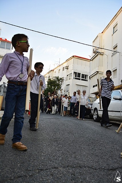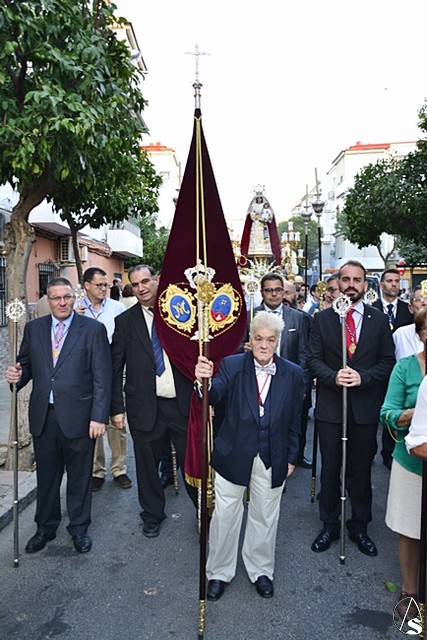 La procesión estuvo compuesta por cruz parroquial, un tramo de niños con cirio, banderin de sor Ángela, presidencia con representación de la hermandad de San Jerónimo, paso de la virgen y Banda municipal Cristo del Perdón de San José de la Rinconada.