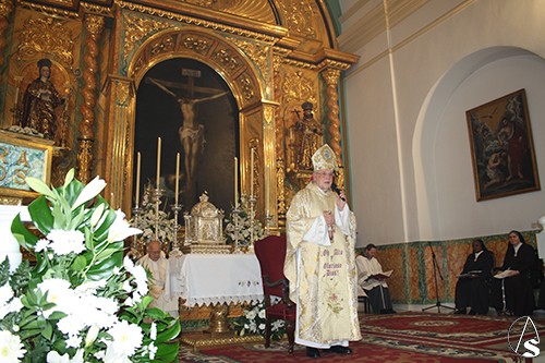 El Sr. Cardenal, en su Homilía, realizada como prevé el ritual, después de haber solicitado Sor Rosa María ser admitida en la Familia de Hermanas Pobres de Santa Clara, y antes de la ceremonia en sí de la Profesión, resaltó, entre otras ideas, cómo el Señor nos llama a cada uno de distinta manera, y en el caso de la neoprofesa, desde la lejana Kenya hasta este lugar de España que es Alcalá de Guadaíra, y también cómo ella aceptó la voluntad de Dios, al igual que hizo la Virgen María en su canto del Magníficat. Por eso, cuando miramos a una de estas hermanas, de las que añadió, todas se parecen tanto, estamos viendo el rostro de la Virgen María. Las Hermanas Pobres de Santa Clara viven el Evangelio en humildad y pobreza y destacan por su amor a la Eucaristía. Don Carlos, haciendo referencia al Año de la Misericordia, dijo que no hay mayor muestra de misericordia que la de Jesús que se hizo pan para alimentarnos.