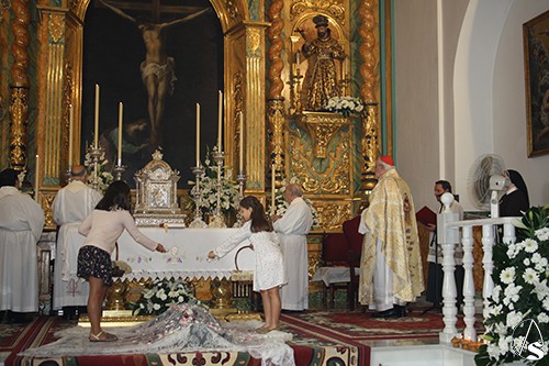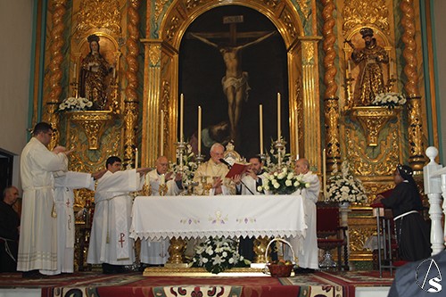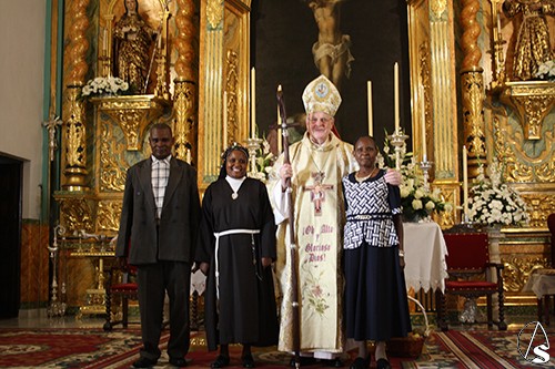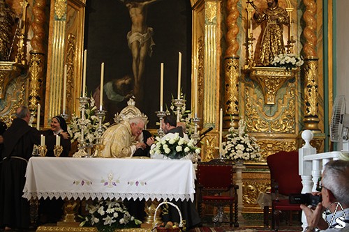 La ceremonia contó con los bellos cantos de la Coral Polifónica de la Hermandad de Nuestro Padre Jesús Nazareno, magistralmente dirigida por el Padre Manuel Ángel Cano Muñoz. En las ofrendas, las Banderas de Kenia y España, simbolizaron la vocación misionera, bajo la misma fe en un solo Señor y la colaboración fraterna que nace del amor de Cristo y profundiza más y mejor el carisma de San Francisco y Santa Clara en la Vida Fraterna.
