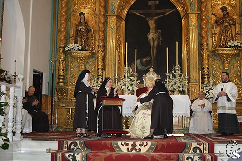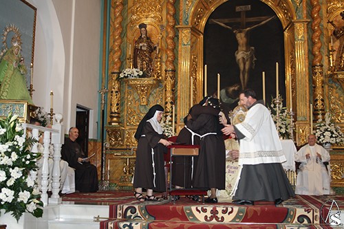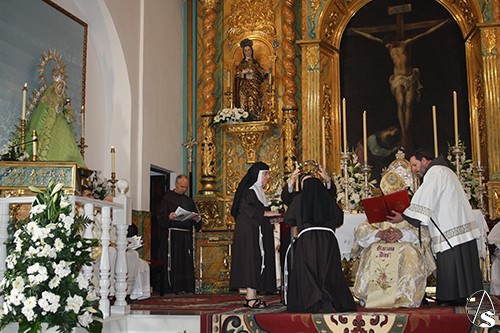 La Hermana Clarisa Sor Rosa María emitió su profesión religiosa pronunciando la fórmula de su Profesión Solemne con las manos juntas entre las de su Madre Abadesa, Sor María del Águila Mateos Serrano, quedando así desposada con Cristo, que la eligió para sí. La Madre Abadesa de la Comunidad de Hermanas Clarisas de Alcalá de Guadaíra le colocó el anillo a la neoprofesa, para significar que yaes esposa de Cristo, al cual seguirá todos los días de su vida, con amor y entrega absoluta al Esposo, al cual se ha consagrado. Asimismo, auxiliada por la Hermana Vicaria, Sor Margarita (para Alcalá siempre Madre) le impuso la corona de Espinas para ser coronada con Cristo para toda la Eternidad.