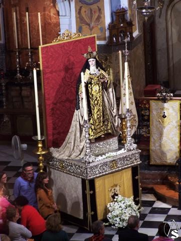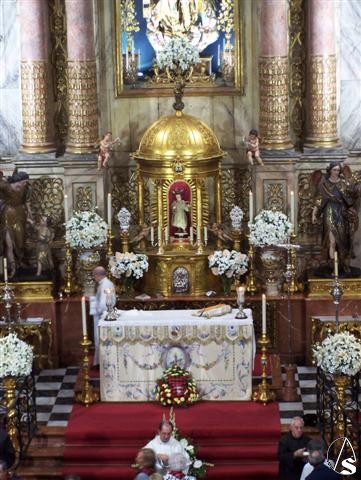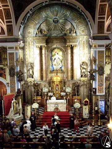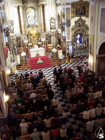 Arte Sacro. Aunque la lluvia hizo su aparición, no pudo con la devoción a la Pilarica que cada año congrega a cientos de devotos en el templo la Calle Rioja. Ante un templo repleto de fieles, que comenzaron a llegar una hora antes de su apertura, a las 10, ya estaba totalmente ocupado en bancos y sillas.