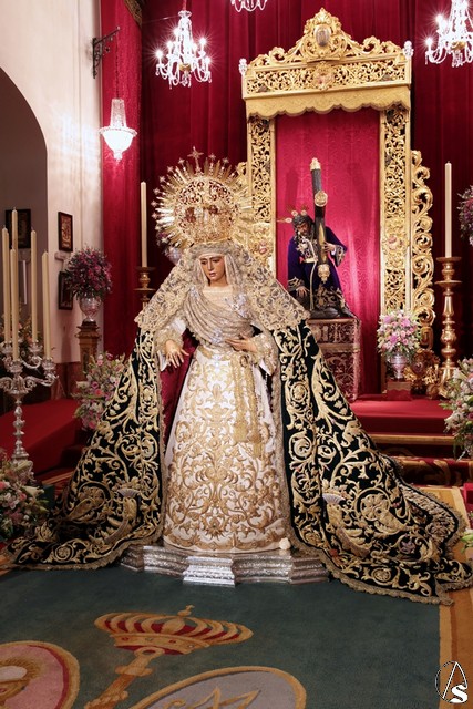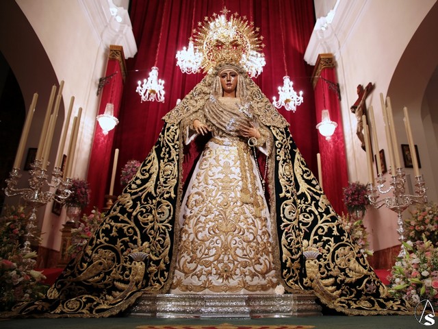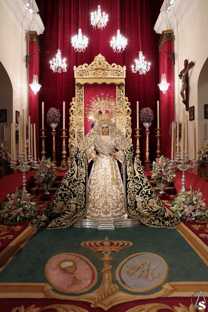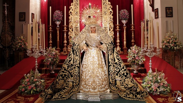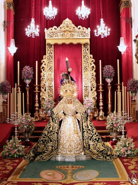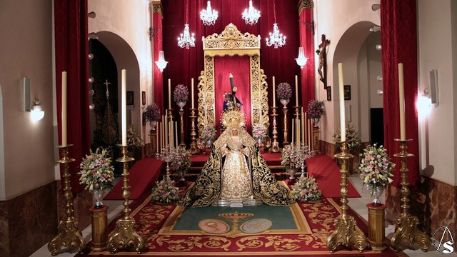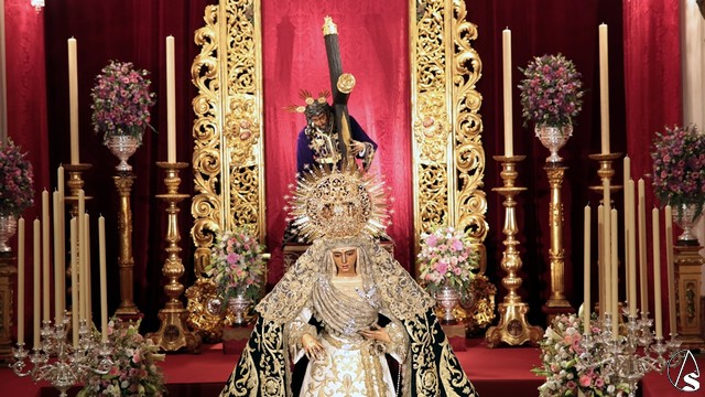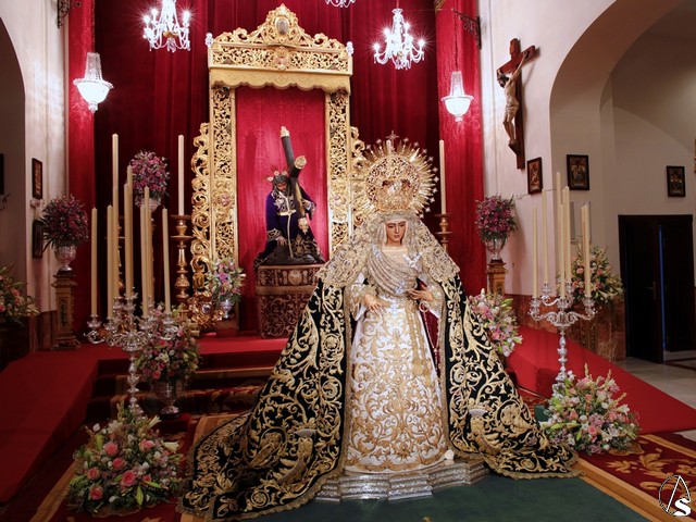 Para esta ocasión la hermandad ha montado un altar completamente inédito e irrepetible en el que se pueden contemplar piezas que la hermandad ha recuperado para esta ocasión como un antiguo respiradero de madera tallada y dorada que perteneció al palio de Nuestra Señora de la Esperanza en 1888.