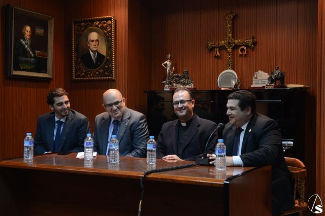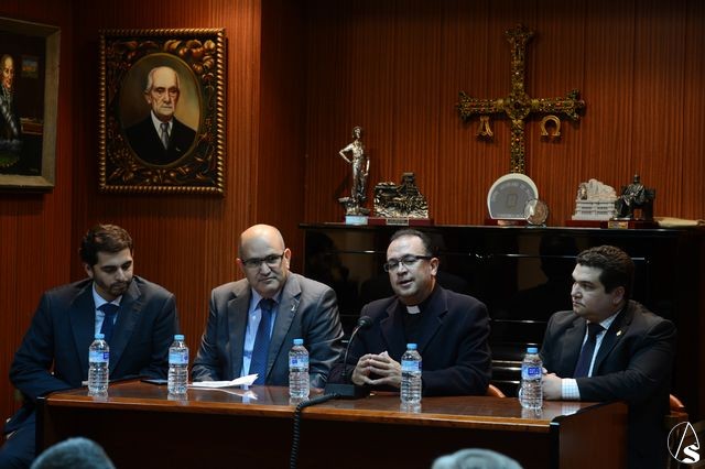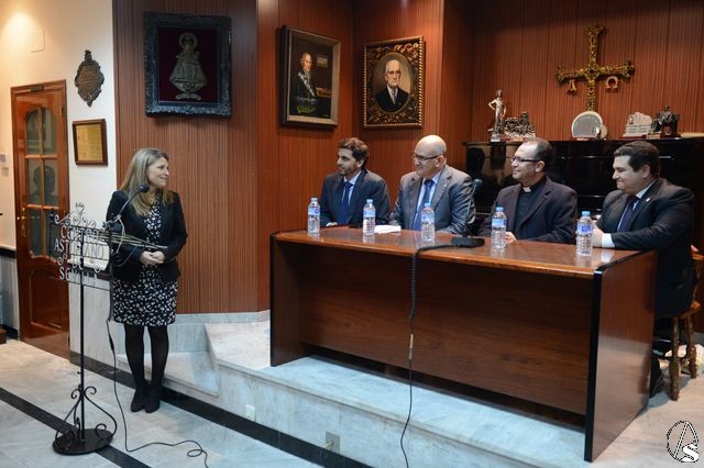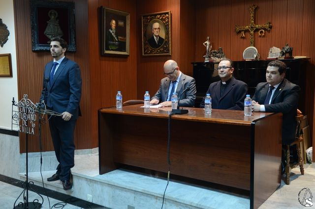 El acto fue presentado por el periodista de ABC y compañero de Fernando Carrasco, Javier Macías, quien tras una breve introducción, fue dando la palabra a los intervinientes, el párroco de la Milagrosa y Director Espiritual, José Antonio Plata, al periodista y Pregonero de la Semana Santa 2017, Alberto García Reyes, que en su disertación contó a los asistentes la manera de ser de Fernando y algunas simpáticas anécdotas vividas junto a él.