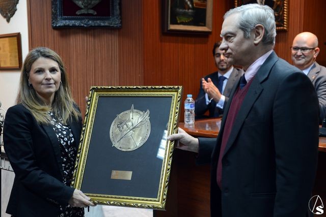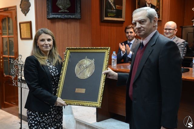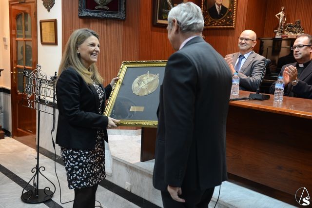 El premio al Mercantil lo entregó el Hermano Mayor Javier de Martos y fue recogido por su Presidente, Práxedes Sánchez, que asistió al acto acompañado de la Vicepresidenta 1ª Ángela Balbuena y del Vicepresidente 2ª Fernando Rodríguez Galisteo.