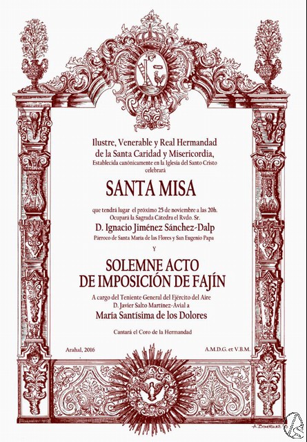 Fran Granado. La Ilustre, Venerable y Real Hermandad de la Santa Caridad y Misericordia de Arahal, establecida canónicamente en la Iglesia del Santo Cristo, celebra Santa Misa que tendrá lugar el próximo 25 de noviembre a las 20:00 horas. Ocupará la Sagrada Cátedra el Rvdo. Sr. Ignacio Jiménez Sánchez-Dalp, párroco de Santa María de las Flores y San Eugenio Papa