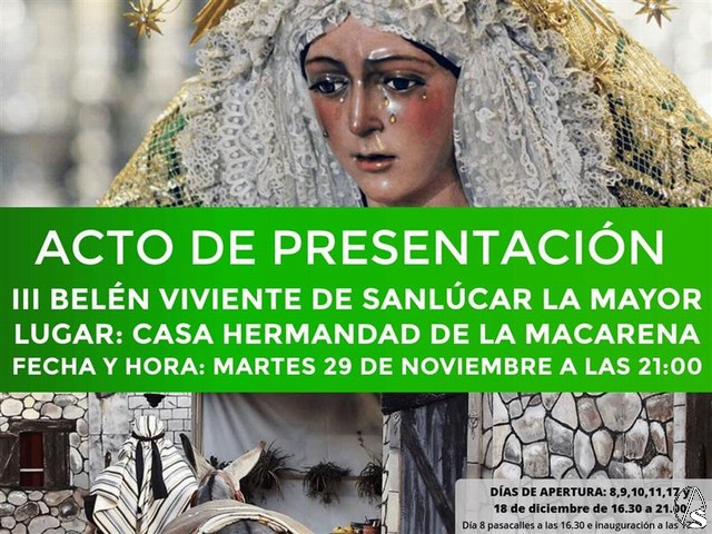 La Hermandad de la Macarena acoge hoy la presentación del III Belén viviente de Sanlúcar la Mayor