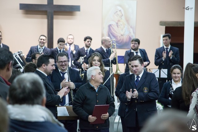 Una vez finalizado el programa del concierto, se produjo un acto sorpresivo y emotivo para todos los presentes, incluidos los propios músicos de la Banda. Y es que hace unos meses, el Director Ejecutivo de la formación, Carlos Mendoza Gordillo, encargaba al Director Artístico, Cristóbal López Gándara, la elaboración de un pasacalles que sirviera como prólogo al XXV aniversario que la formación musical cumplirá en 2017. Dicha pieza, además, ha servido para homenajear al fundador de la Banda y Director Honorífico de la misma, Laureano Borrego, siendo el título de la obra ‘Maestro Laureano’.