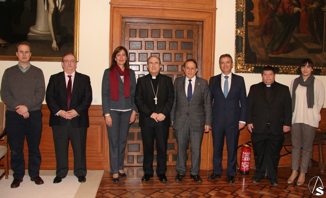 El presidente de la Fundación Sevillana Endesa, Antonio Pascual, el arzobispo de Sevilla, Juan José Asenjo, y la alcaldesa de la localidad sevillana de Osuna, Rosario Andújar, han firmado hoy en el Palacio Arzobispal un convenio de colaboración para la iluminación artística interior de la Iglesia de Santo Domingo, ubicada en Osuna.