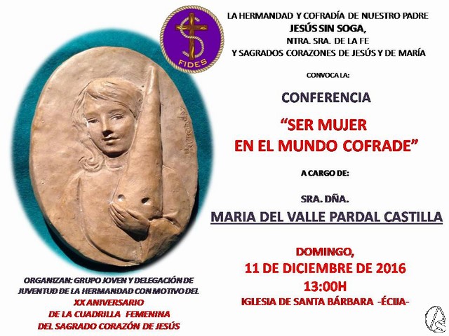 CONFERENCIA DE Mª DEL VALLE PARDAL: “SER MUJER EN EL MUNDO COFRADE”