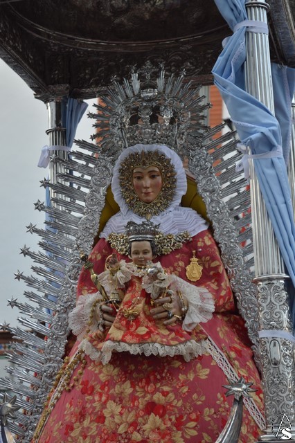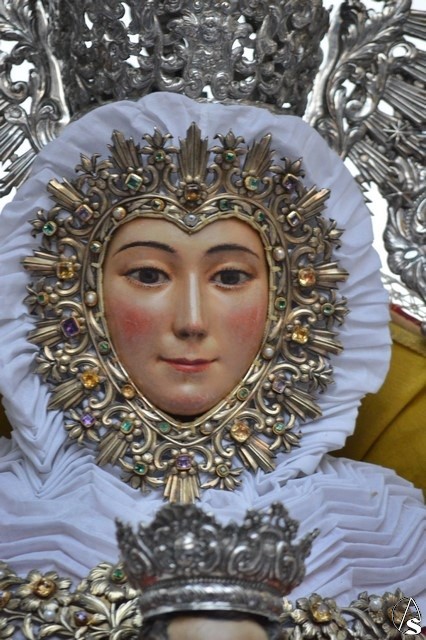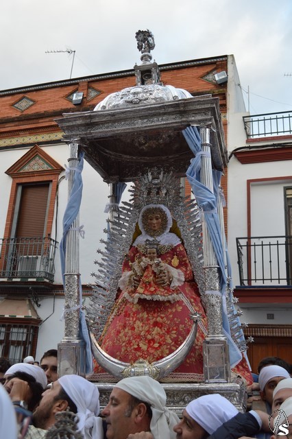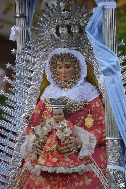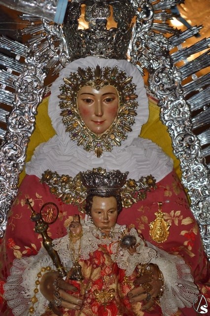 Se cuenta por siglos la devoción de Lora del Río por su Patrona, Nuestra Señora de Setefilla, celebrando en su honor una de las mayores romerías de la comarca de la Vega del Guadalquivir. La primitiva imagen se perdió en los sucesos del 36, siendo Agustín Sánchez Cid quien esculpió el bendito rostro de la Virgen. La devoción a la Santísima Virgen hizo que fuese coronada canónicamente por, entonces Arzobispo, don Carlos Amigo Vallejo en la Plaza de la Coronación el 8 de septiembre de 1987. Para sus traslados luce la Santísima Virgen saya y manto de tono rojo, así como corona y ráfaga de plata, siendo portada, tal y como ocurre en su romería, bajo el templete de plata.