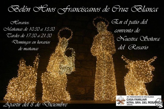 Fran Granado. El próximo día 8 de diciembre tendrá lugar la bendición e inauguración del Belén Navideño de los Hermanos Franciscanos de Cruz Blanca del Convento de Nuestra Señora del Rosario en Arahal y lo podremos encontrar en el patio del convento.