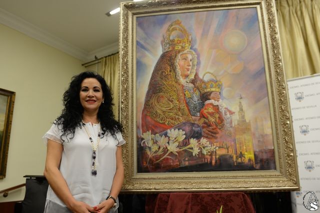 De su currículum destacamos la autoría del cartel de la Virgen de los Reyes 2016 y de la Velá de Triana 2015. Es Directora de las academias “Todos crean” en Sevilla y Huelva, y está considerada como especialista en retratos, en los que ha reflejado a numerosos personajes famosos. Tras 30 años de ejercicio de la profesión, acaba de venir de Méjico de impartir una Magistral en su Museo Nacional de la Acuarela, tras haber expuesto de manera itinerante en ese país.