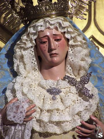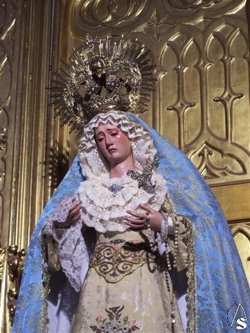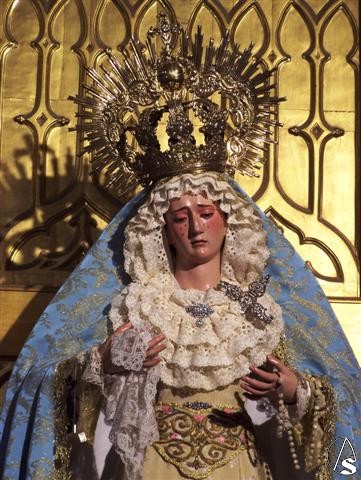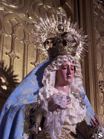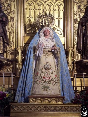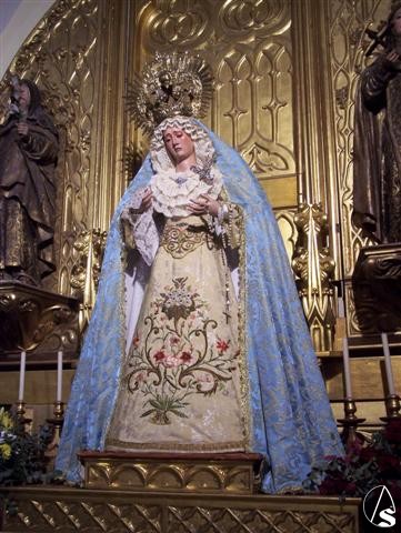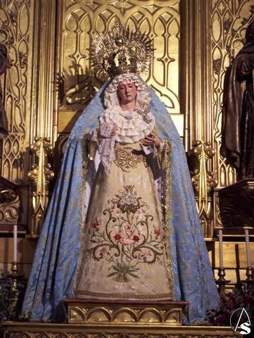 Ya se encuentra ataviada para estas fechas concepcionistas y hasta la Navidad la imagen de Nuestra Señora de la Salud en la Iglesia conventual del Santo Ángel de Sevilla. Vestida por Sergio Cornejo lleva saya con bordados antiguos en oro y sedas, así como manto celeste de brocado.