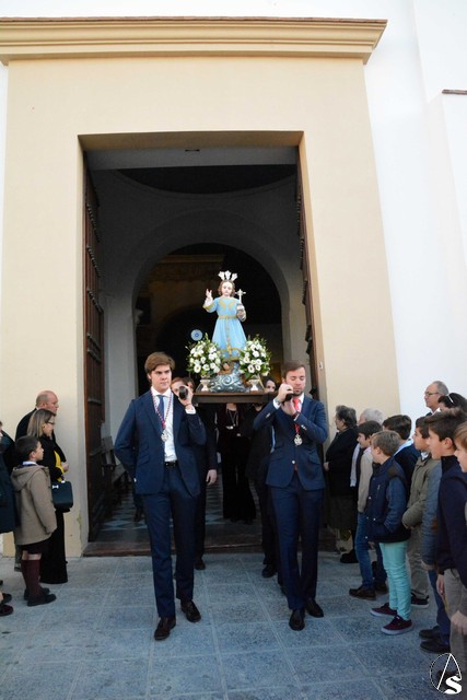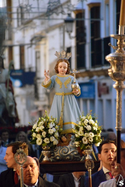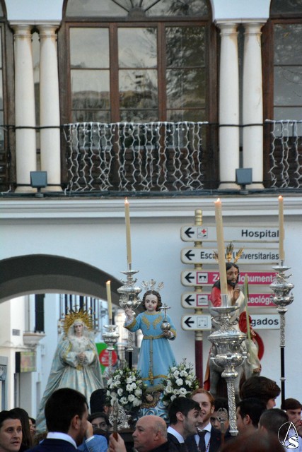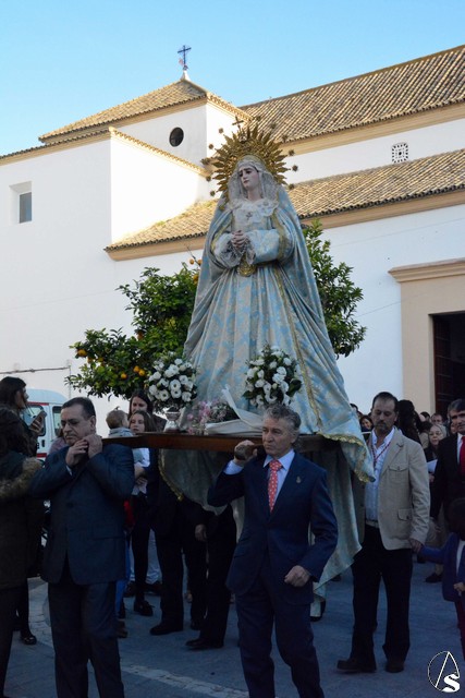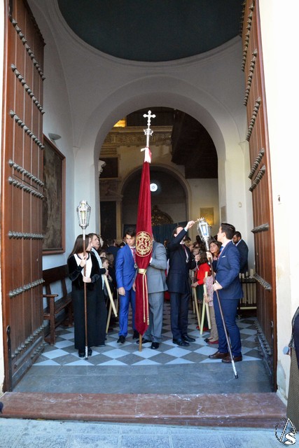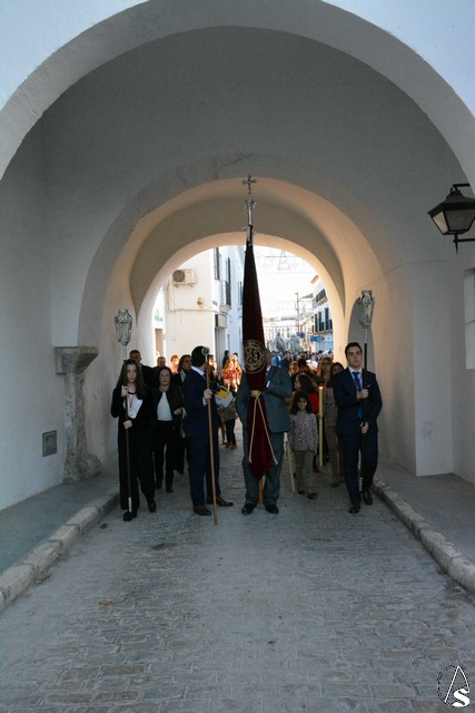A las cuatro de la tarde y en la Iglesia de San Agustín, donde la primera de ellas ha residido todos esto años, se celebró una Eucaristía de despedida de la comunidad poarroquial y de la hermandad de la Veracruz y que finalizó con el canto del "Adiós con el Corazón" a instancias del sacerdote celebrante. A continuación, las imágenes del Dulce Nombre de Jesús, el Señor de la Entrada en Jerusalén y Nuestra Señora Virgen de los Desamparados fueron portadas por sus hermanos, acompañando con el rezo del Rosario, hasta la Plaza de España, donde esperaba la Cruz Parroquial y las banderas de las demás hermandades de Osuna.
