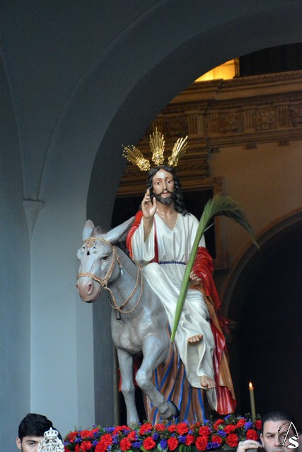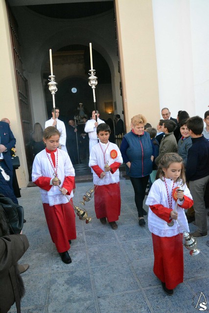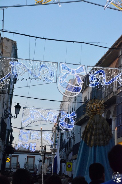 Reunidos los dos cortejos en la Plaza de España, continuaron juntos, rodeados de una multitud de fieles y devotos y bajo las luces navideñas ya encendidas, hasta el templo de Santo Domingo, donde las cinco imágenes fueron depositadas en el altar mayor.