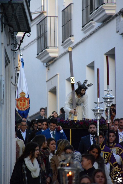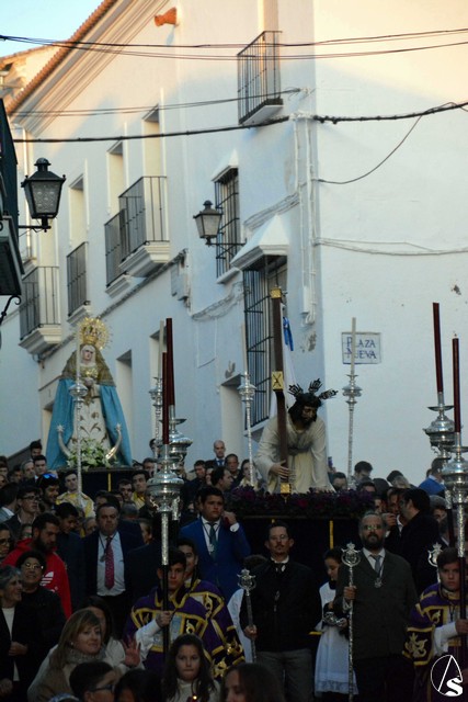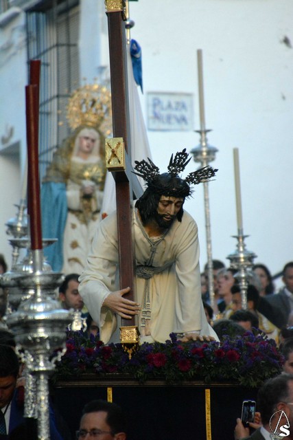 Al mismo tiempo, un esquema similar tenía lugar en el Convento Mercedario de la Encarnación, donde ha residido la hermandad de Jesús Caído. Se da la circunstancia que el pasado Primer Domingo de Adviento, la talla del Señor fue repuesta al culto después de un proceso de restauración. Tras una Eucaristía que sirvió de despedida de la comunidad de Mercedarias Descalzas que ha acogido a la corporación, Jesús Caido y Nuestra Señora y Madre de los Dolores y también rezando el Rosario, fueron trasladados hasta la Plaza de España. Impresionante la bajada de la calle en cuesta de Luis de Molina, donde fueron cantadas sendas saetas al paso de las imágenes.