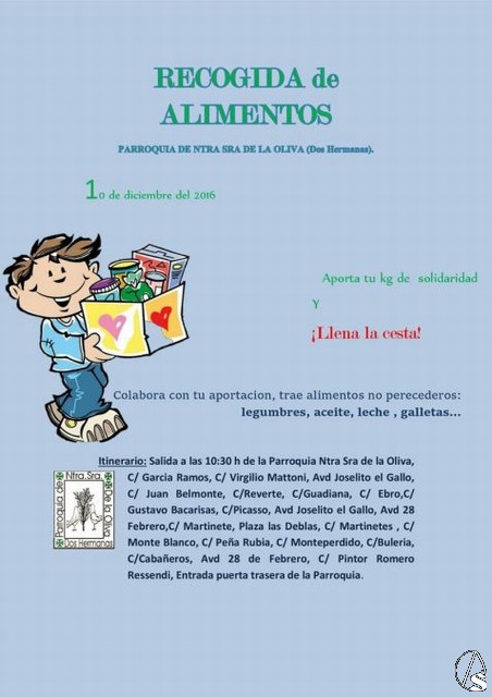 Provincia. Hoy sábado, recogida de alimentos en la Parroquia de "La Oliva" de Dos Hermanas