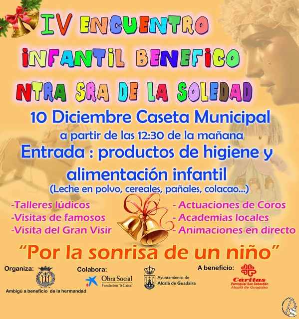 Fran Granado. Hoy día 10 de diciembre la Hermandad del Santo Entierro de Alcalá de Guadaira organiza el IV Encuentro Infantil benéfico Nuestra Señora de la Soledad "Por la sonrisa de un niño" en Alcalá de Guadaira.
