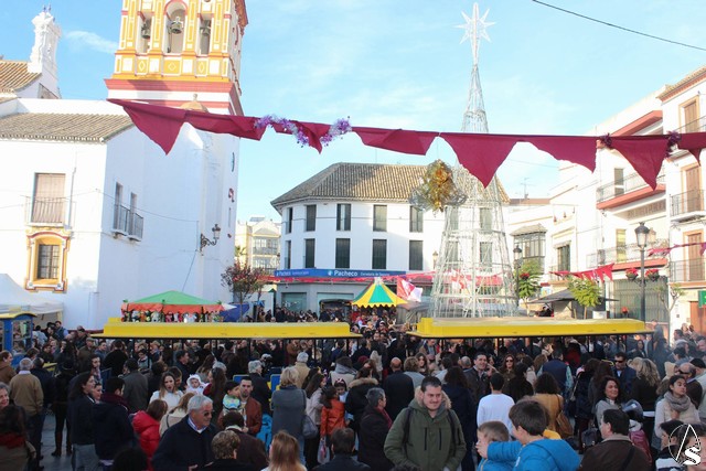 Fran Granado. Miles de personas visitaron ayer 8 de diciembre Sanlúcar la Mayor para ver el desfile y posterior inauguración del Belén Viviente. Todo el itinerario, que recorrió gran parte del centro histórico de la localidad, estuvo abarrotado de centenares de personas, especialmente en la Plaza de San Pedro, de donde partió la comitiva, y las Plazas Virgen de los Reyes, Cristo de la Humildad y Santa María, donde confluyó gran cantidad de público, pues además durante esta semana, estas zonas acogen el Mercado Navideño de la localidad, con numerosas actividades para toda la familia.