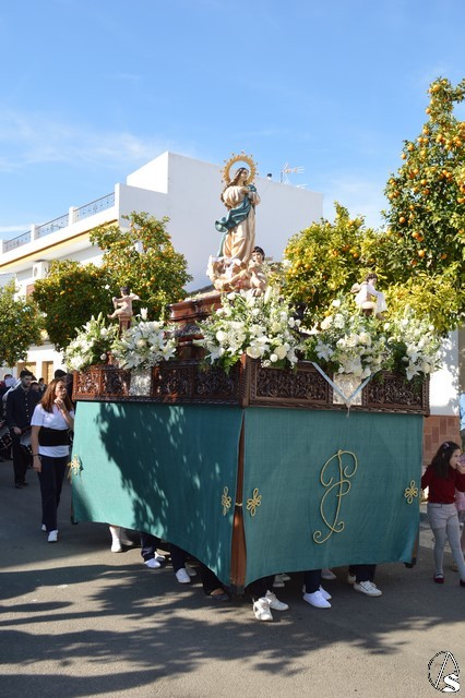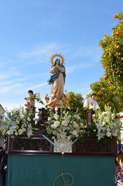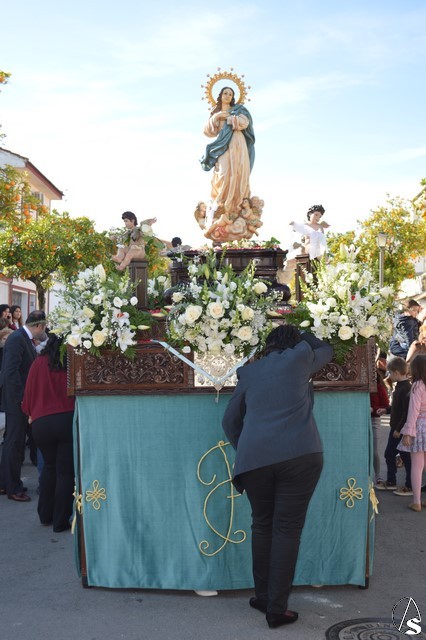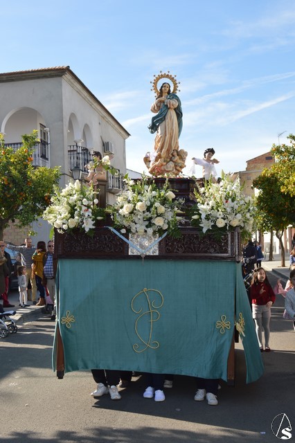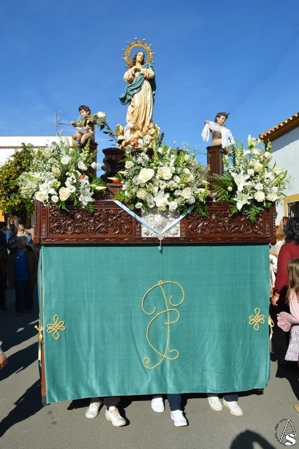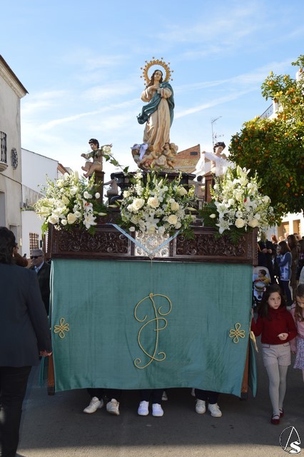 Manuel Pinto Montero. La Patrona de La Luisiana volvió a pasear por las calles de su pueblo en la mañana del pasado 8 de diciembre, Festividad de la Inmaculada Concepción. La imagen fue portada en paso de madera tallada y exornada con flores de tonalidades blancas. En sus esquinas cuatro pequeños ángeles portaban distintos elementos en alusión a la Santísima Virgen María. El paso es portado por las mujeres de la localidad que realizan un gran esfuerzo por llevar a su Patrona y no perder la tradición de procesionar a la Santísima Virgen en su Festividad.