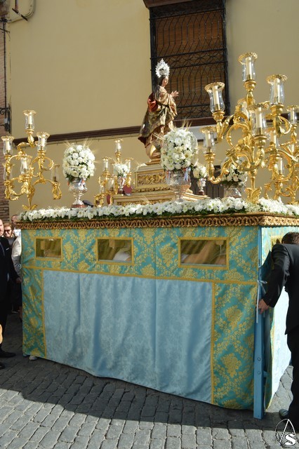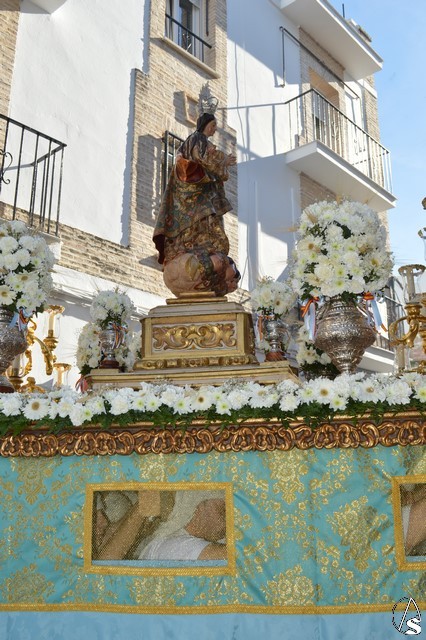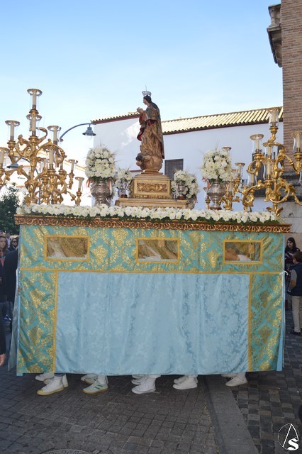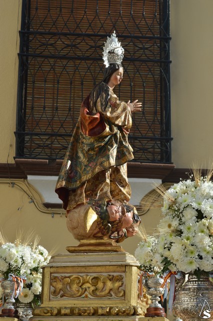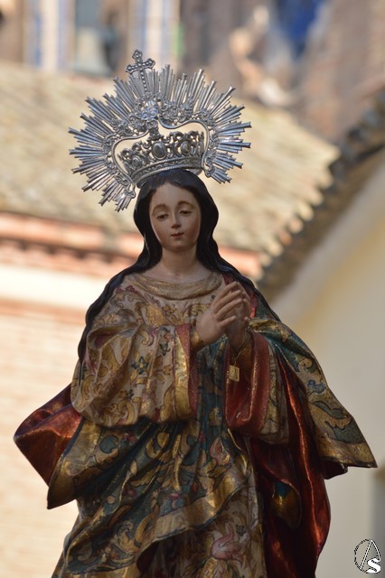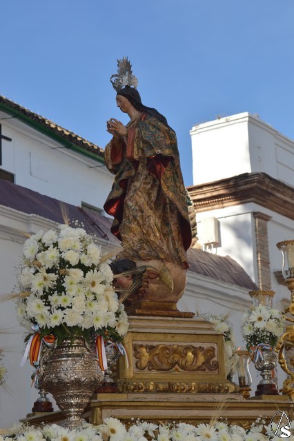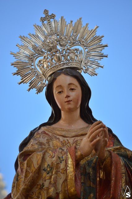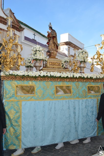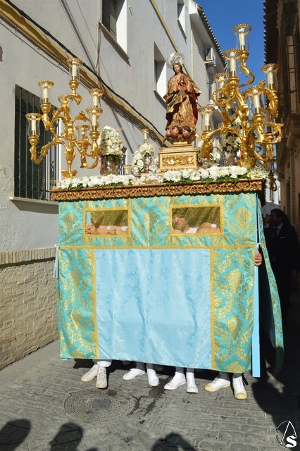 La bella imagen de la Santísima Virgen en su Inmaculada Concepción, obra fechada en el siglo XVIII, fue portada en sencillo paso exornado con flores blancas e iluminado con los candelabros del paso de Jesús Cautivo. Los sones de la Banda Municipal de Fuentes de Andalucía pusieron el sonido a una gloriosa mañana en la cual Écija volvió a manifestar su devoción mariana al misterio de la Inmaculada Concepción de la Santísima Virgen María.