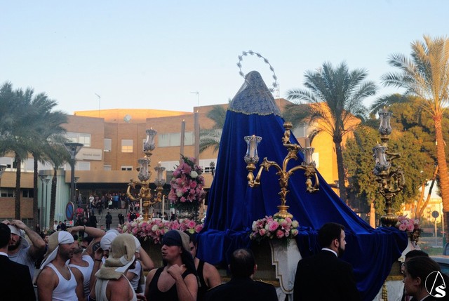 Curiosamente también en el paso en el que procesionó en el día de ayer, aunque en esta ocasión ha sido con acompañamiento musical, concretamente los sones de la Banda de Música de la Cruz Roja.