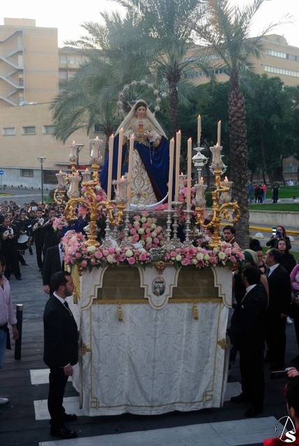 Es la segunda vez que la imagen llega a este centro en este año 2016 ya que el pasado mes de mayo también lo visitó durante el rosario vespertino, aunque algo más deslucido por la lluvia.