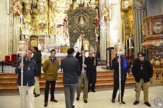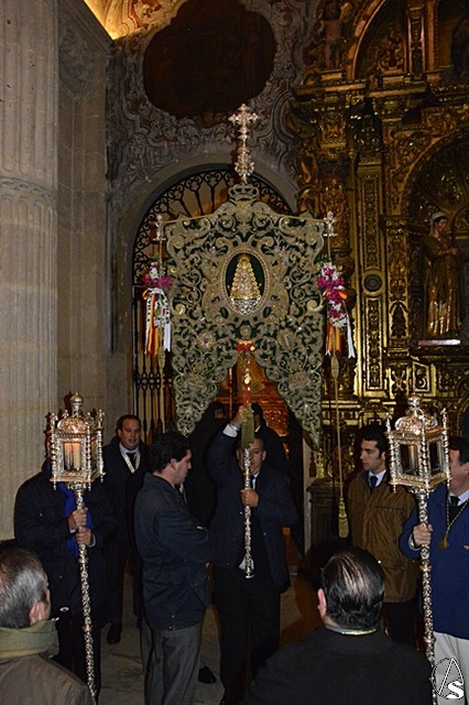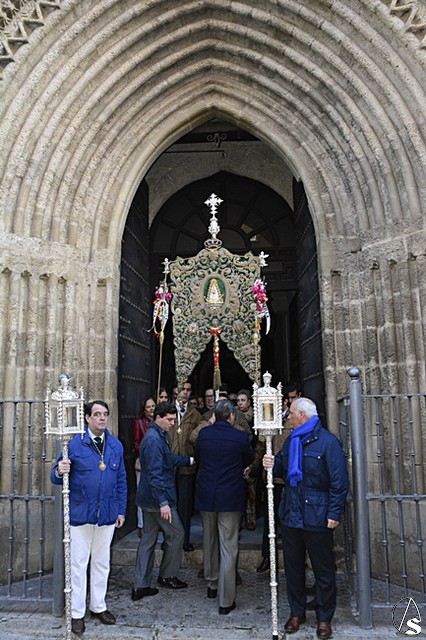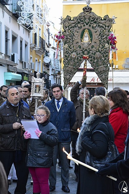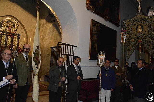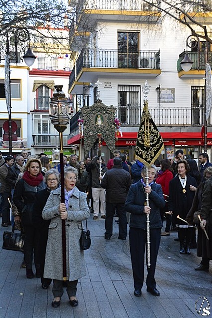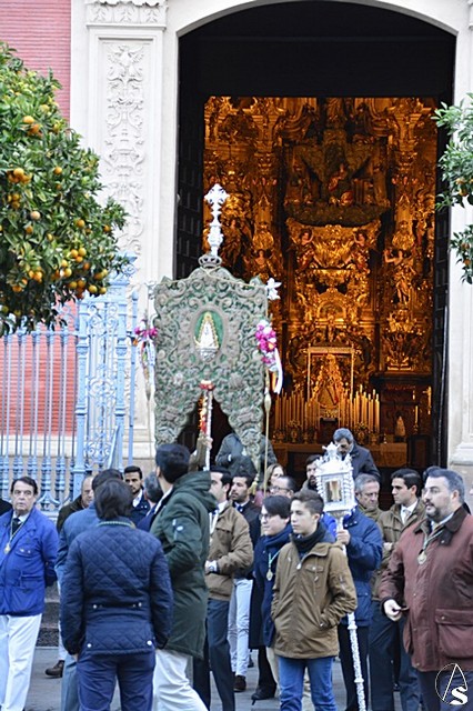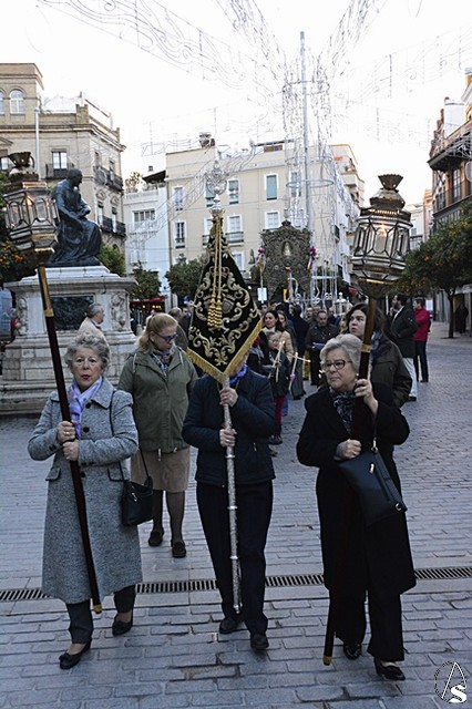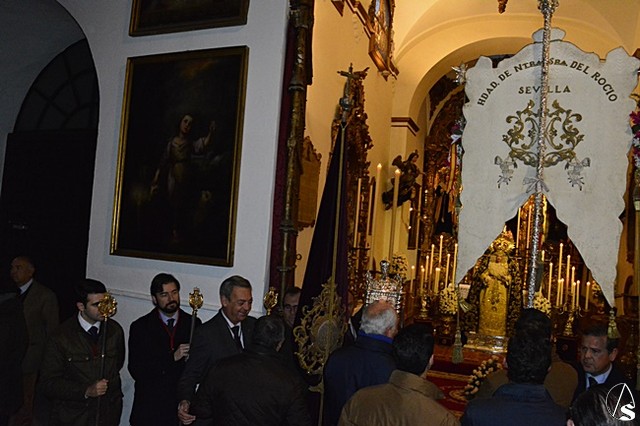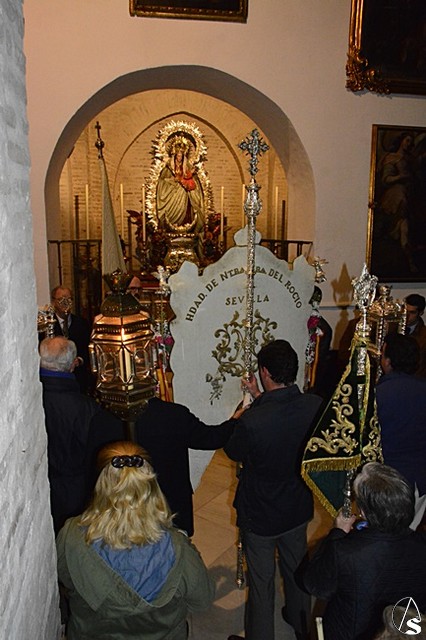 Fco Javier Montiel. El pasado sábado 17 de diciembre, la Hermandad del Rocío de Sevilla ralizó el Santo Rosario con su Bendito Simpecado por las calles de la feligresía, visitando en esta ocasión la Parroquia de San Isidoro, sede de la Hermandad durante las obras de restauración del Salvador.
