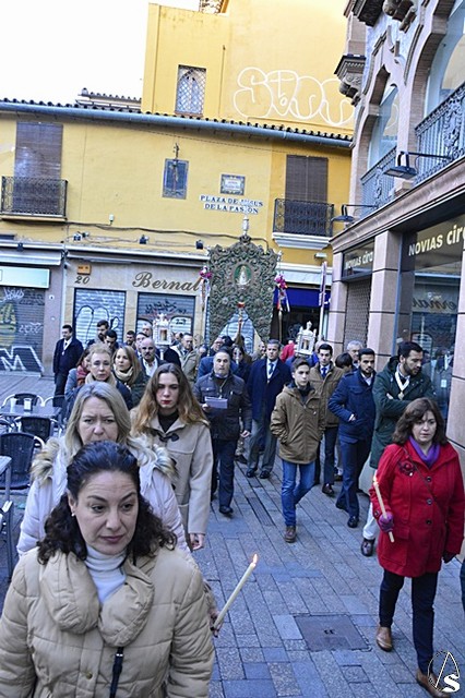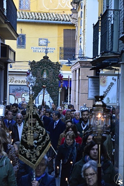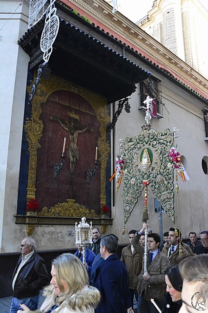 El cortejo salió a las 9.00 h y transitó por Plaza del Salvador, Córdoba, Plaza Jesús de la Pasión, Alcaicería, Plaza de la Alfalfa, Jesús de la Tres Caídas y Luchana, para entrar en la Parroquia de San Isidoro donde fue recibida por las representaciones de las Hermandades de La Salud y San Isidoro.