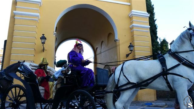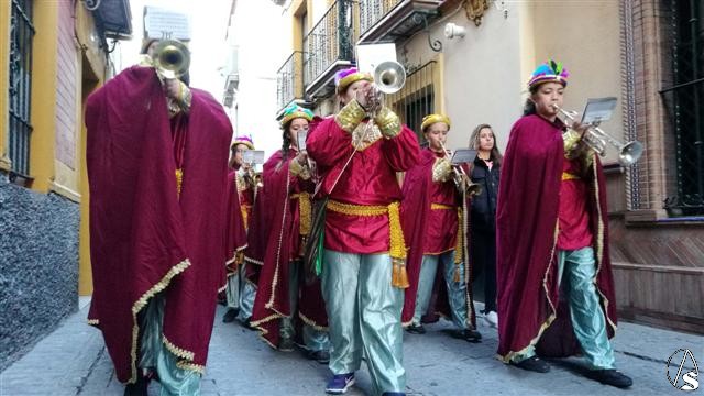 Antes, a primera hora de la mañana, el cortejo visitaría la Basílica de la Macarena para besarle la mano a la Virgen de la Esperanza. Luego se realizó un recorrido por las calles aledañas, llegando al comedor social del Pumarejo donde se realizaría una ofrenda de alimentos por parte de las hermandades organizadoras. El cortejo del Cartero Real estuvo en todo momento amenizado por la Agrupación Musical Nuestra Señora del Carmen de Sevilla.