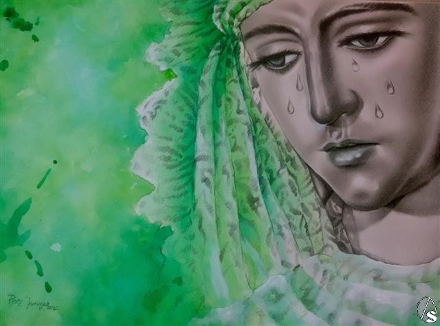 Arte Sacro. Bajo este título, Pérez Indiano ha plasmado a la Esperanza de Triana siguiendo la técnica que caracterizan a sus obras.