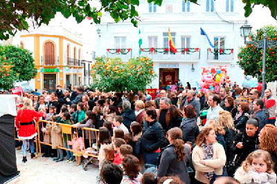 Provincia. Los niños y niñas de Alcalá del Río entregaron su carta al cartero Real en una tarde de ilusión