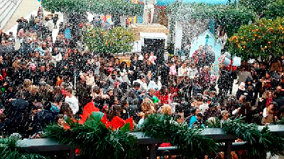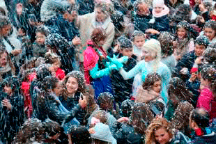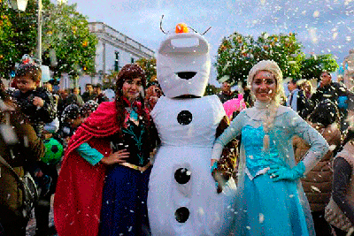 Como se anunciaba la fría tarde pronosticaba algo diferentes, y así fue. Frozen y sus amigos quisieron acompañar a los muchos niños y niñas que disfrutaron de sus juegos y canciones. Y sobre las cinco y media de la tarde como se esperaba, la nieve llegó. Nevaba sobre los pequeños, padres, madres, abuelos, etc., que no perdieron la ocasión para inmortalizar tal momento con sus cámaras.