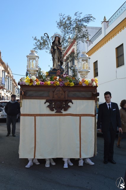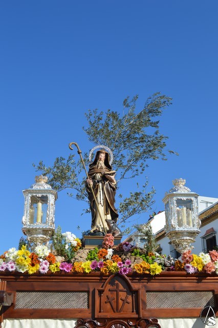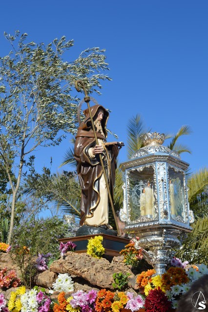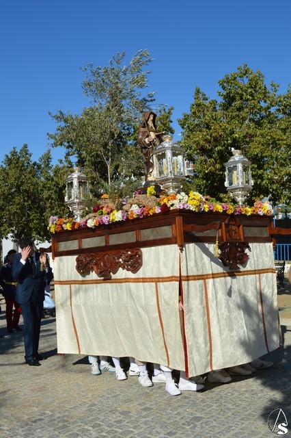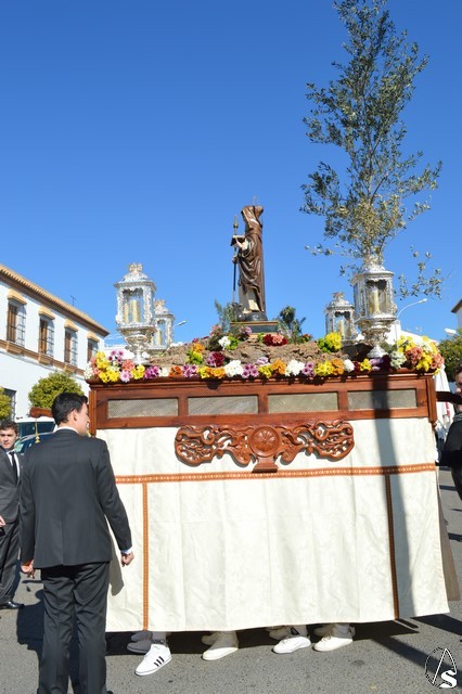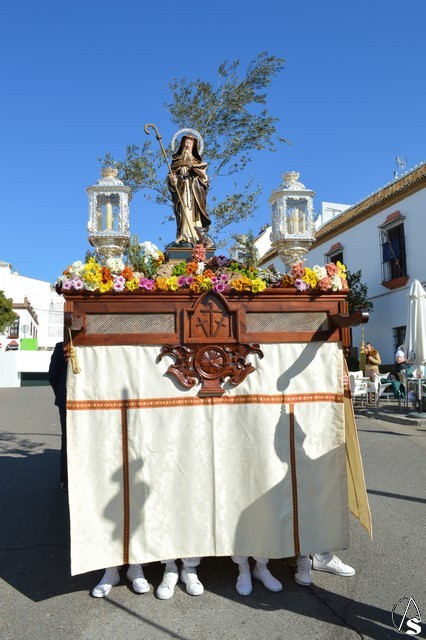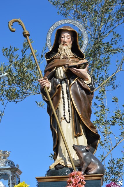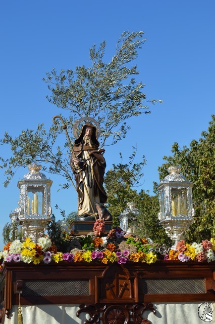 En esta ocasión la talla de San Antón, con rasgos del siglo XVI, procesionó en el paso de Nuestra Señora del Rosario de la Hermandad de San Blas con los faroles de plata de la Hermandad de San Felipe de la propia localidad. Distintas tonalidades de flores exornaron el paso de San Antón, al que acompañó musicalmente los sones de la Agrupación Musical del Santísimo Cristo de la Bondad de Alcalá de Guadaíra.