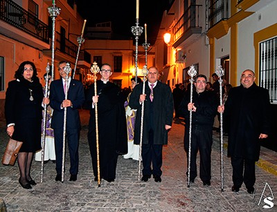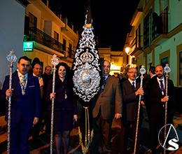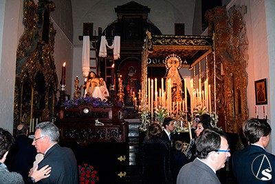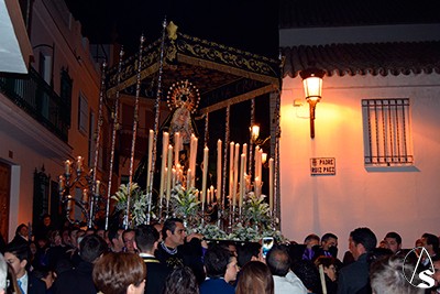 Antonio Rendón. Un rito de siglos vuelve como es tradicional el traslado de Nuestra Señora de los Dolores en su Soledad coronada, desde su sede donde recibe cultos y rezos en la Real Ermita de San Gregorio de Osset, hasta la Santa Iglesia Parroquial de Santa María de la Asunción, de la ribereña localidad sevillana de Alcalá del Río, donde dieron comienzo los cultos de septenario que comenzó el 12 de marzo y finalizó el 18 del mismo mes el Viernes de Dolores. Con motivo del año 2016 del decreto del Papa Francisco del año Jubilar de la Misericordia.