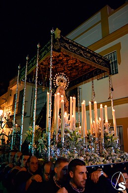 Para esta extraordinaria procesión el cortejo a largó la comitiva pasando por varias calles que no había pasado nunca, hasta la madrugada que llegaba a la parroquia de Santa María de la Asunción, donde tiene sus cultos de Septenario. La parte musical del paso de la virgen, estuvo a cargo de la Banda de música de la Soledad de la localidad Ilipense, que dirige su director valenciano Héctor Herrero Canet, con un repertorio elegido de marchas clásicas y muy contundentes.