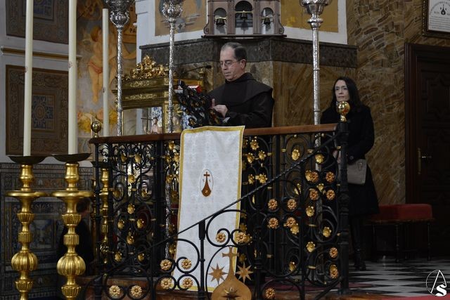 Daniel García Acevedo. El templo del Santo Ángel acogió la presentación del cartel del IV Centenario de la hechura del Cristo de los Desamparados por Martínez Montañes, tras la Comunión de la eucaristía de las 12 horas.