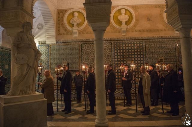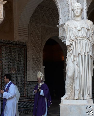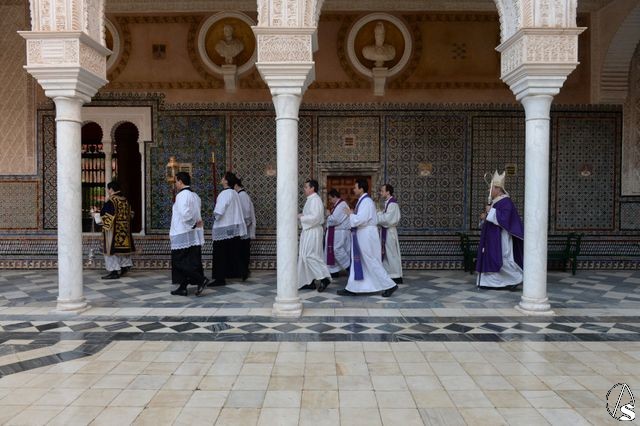 Arte Sacro. Tras la eucaristía, este año se celebró el Vía Crucis de la Pía Unión, en la casa de Pilatos, por las galerías del patio interior, siguiendo una antigua tradición que rememora aquellos Vía Crucis iniciales hasta la Cruz del Campo.