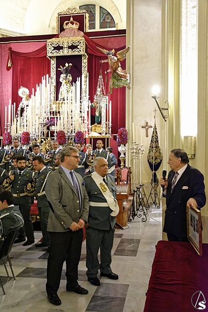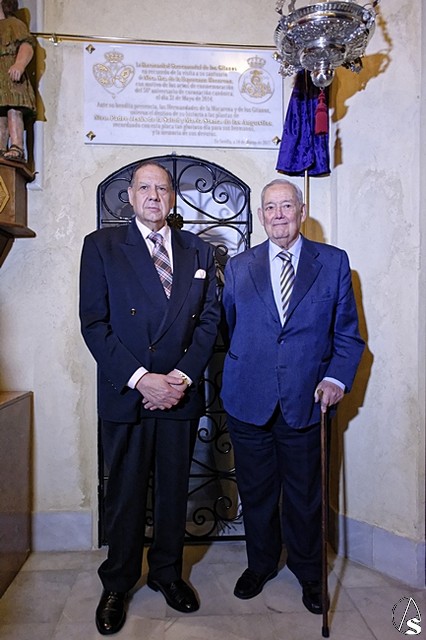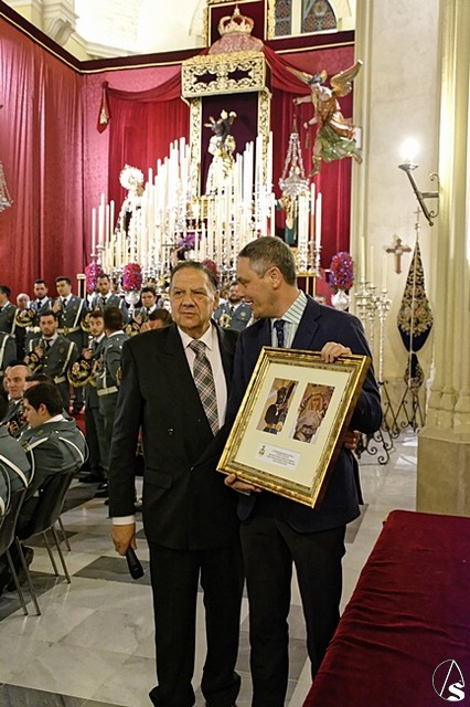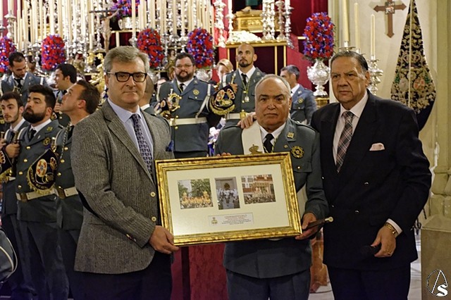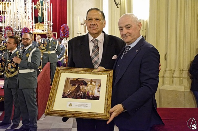 Para finalizar el acto, Pepe Moreno, hermano mayor de Los Gitanos dirigió unas sinceras y emotivas palabras de agradecimiento a la hermandad de la Macarena. Hizo entrega de unos cuadros de recuerdo de este día a Rafa Serna, Alberto García, pregonero de este año, a Ignacio Guillermo, y al director de la Banda de Cornetas y Tambores de la Centuria Macarena, Pepe Hidalgo.